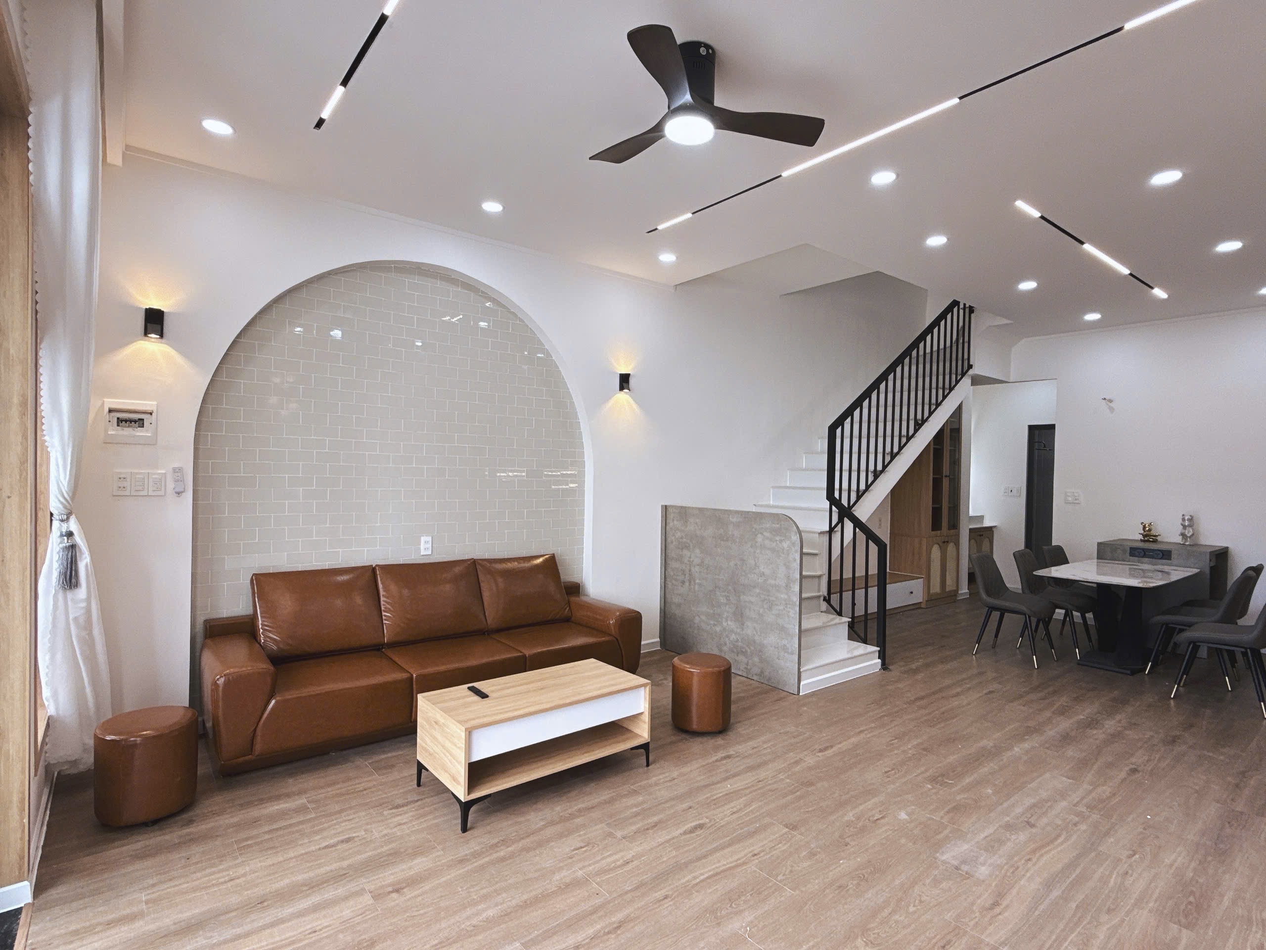 Nhà 2 tầng thiết kế đan xen 5 khoảng sân, vừa làm mát vừa khắc phục tốt thế đất méo